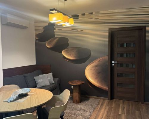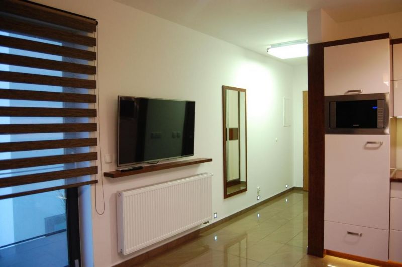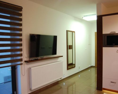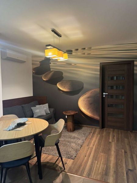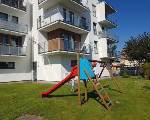 Ten przestronny apartament jest w pełni wyposażony, przeznaczony dla 4osób. Składa się z salonu z aneksem kuchennym i częścią jadalnianą oraz 1 sypialnią, łazienką, przedpokojem i umeblowanym tarasem. Posiada własne miejsce parkingowe w garażu podziemnym z bramą zamykaną na pilot. Goście mają do dyspozycji bezpłatne WiFi.
