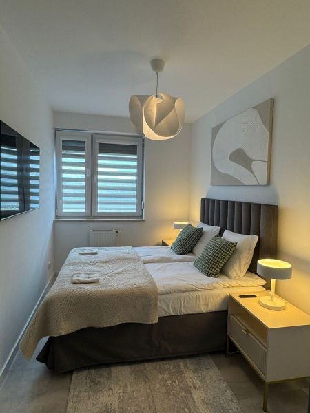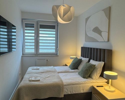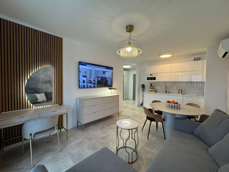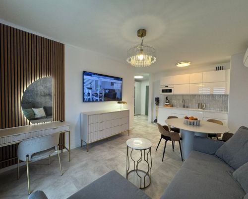 Ten przestronny apartament o powierzchni 40 m kwadratowych przeznaczony jest dla 4 osób. Składa się z salonu z aneksem kuchennym i częścią jadalnianą oraz 1 sypialnią, łazienką, przedpokojem i umeblowanym balkonem. Goście mają do dyspozycji bezpłatne WiFi.